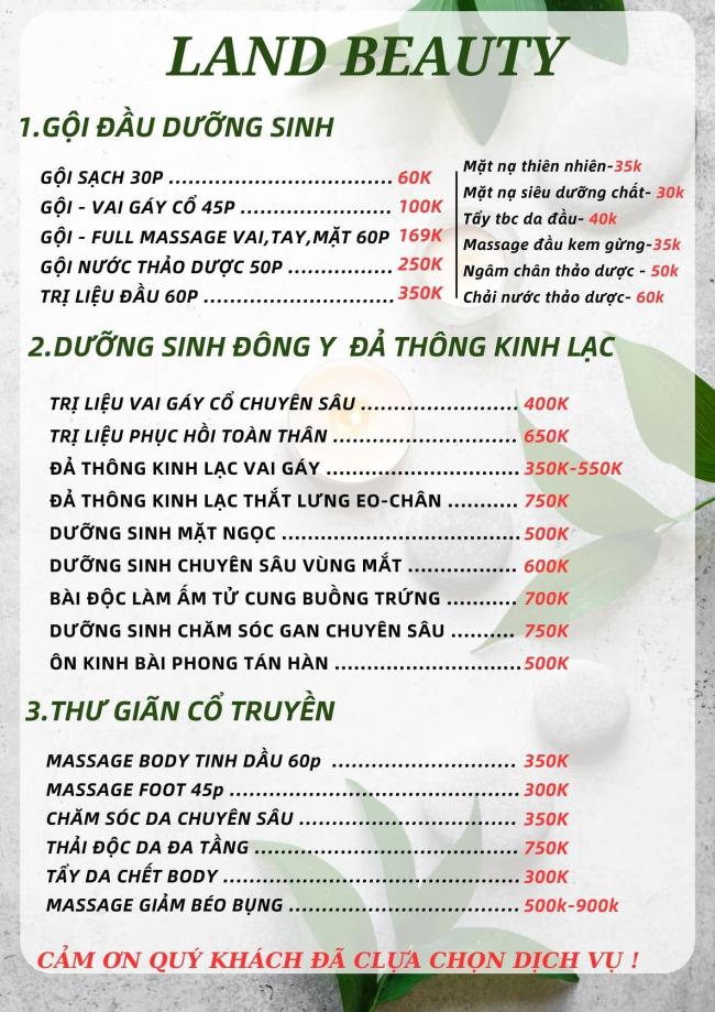 LAND BEAUTY - CHĂM SÓC SẮC ĐẸP, SỨC KHỎE VỚI CÁC DỊCH VỤ DƯỠNG SINH CÁC BỘ PHẬN CƠ THỂ, CHĂM SÓC DA MẶT. LAND BEAUTY - NƠI THƯ GIÃN CHO BẢN GIẢI TỎA STRESS